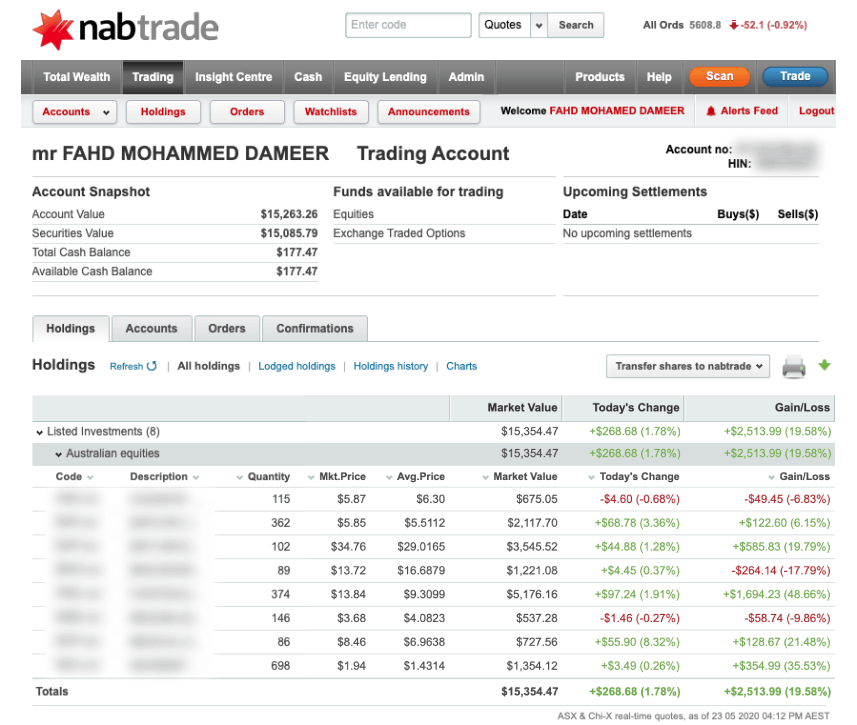 And here is Fahd’s screenshot from his broker account as of 23rd May 2020.
