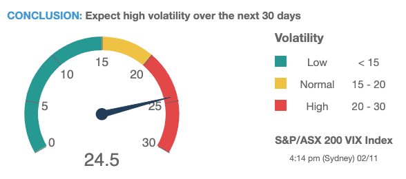 The S&P/ASX 200 VIX Index (XVI) calculates the amount of volatility expected in the ASX over the next 30 days. It is also known by other names like “Fear Gauge” or “Fear Index.”