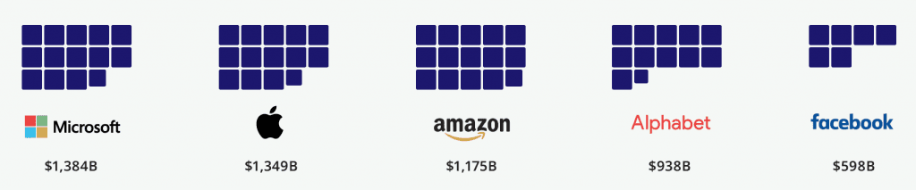 What the infographic we posted doesn’t show is that 4 of the top 5 companies in the US are bigger than the total market cap of the ASX.