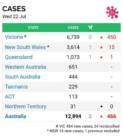 Another all time high of 530+ cases in Australia with no surprises as to Victoria being the worst affected.