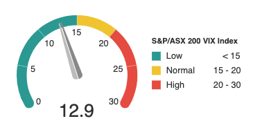 The ASX VIX (volatility index) has crept up close to 13. Interestingly, the VIX in the US has gone up higher.