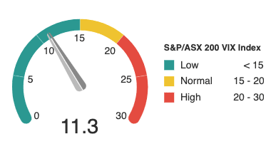 The ASX VIX (volatility index) remains under 12.